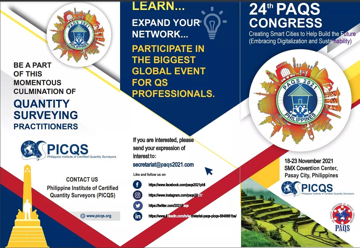 With the emergence of smart cities, we have developed the theme “Creating Smart Cities to Help Build the Future” for PAQS Congress Philippines 2021. The Congress aims to focus on the role of the Quantity Surveyors and other allied professionals in ensuring sustainability, mobility, digitalization, resilience, standardization and competence in the construction industry.
