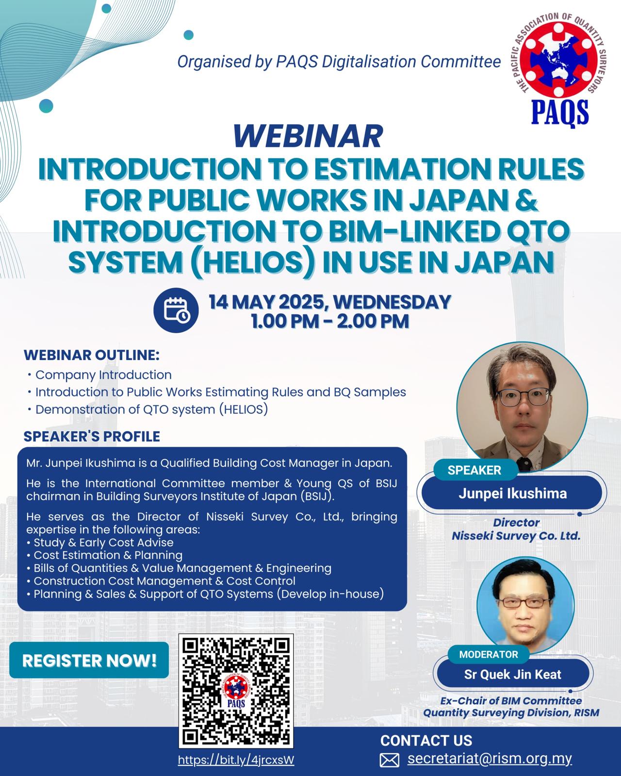 #Webinar #QuantitySurveying #BIM #QTO #Construction #CostEstimation #PAQS #Digitalisation #Japan #PublicWorks